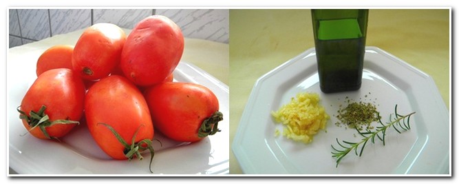 À parte misture o azeite com o alho amassado, com o orégano e o alecrim. Coloque metade desta mistura em um vidro e arrume os tomates por cima (ainda quentes). Coloque o restante do azeite aromatizado sobre os tomates e espere esfriar. Tampe e conserve na geladeira.