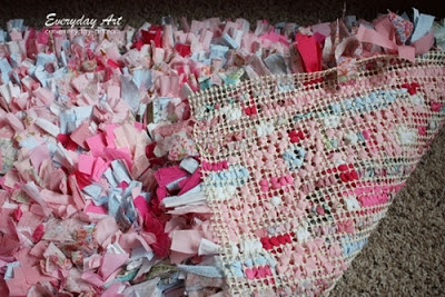 4- Pelo avesso do tapete é possível perceber que saltaram alguns espaços, se você preferir pode fazer com ele completo.