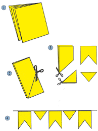 a folha ainda dobrada, recorte toda a volta da bandeirinha e também do