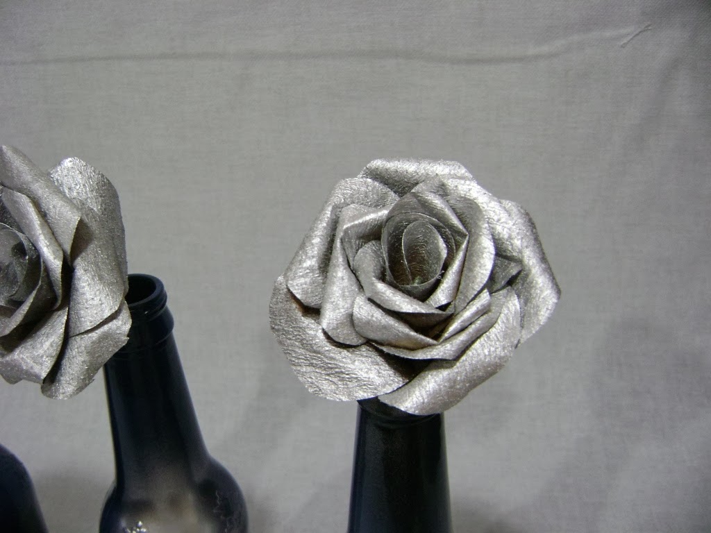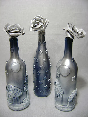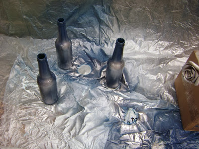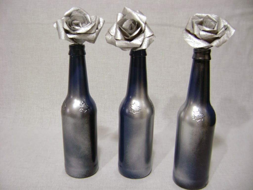 Nestas garrafas de cerveja, só usei a tinta spray. Bem simples!