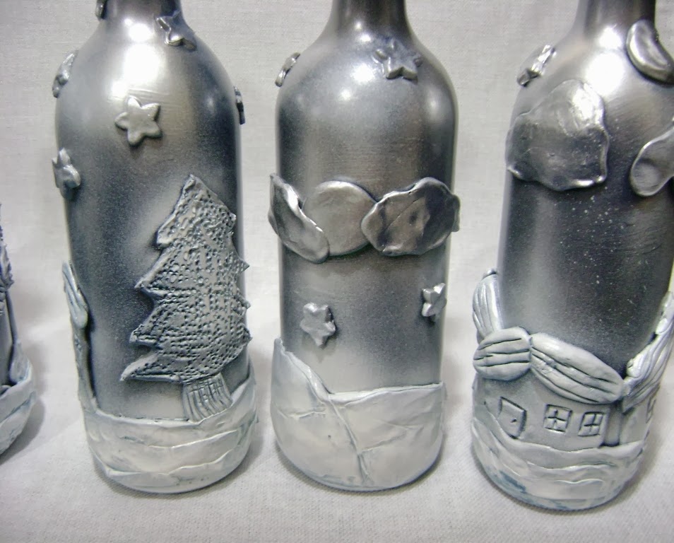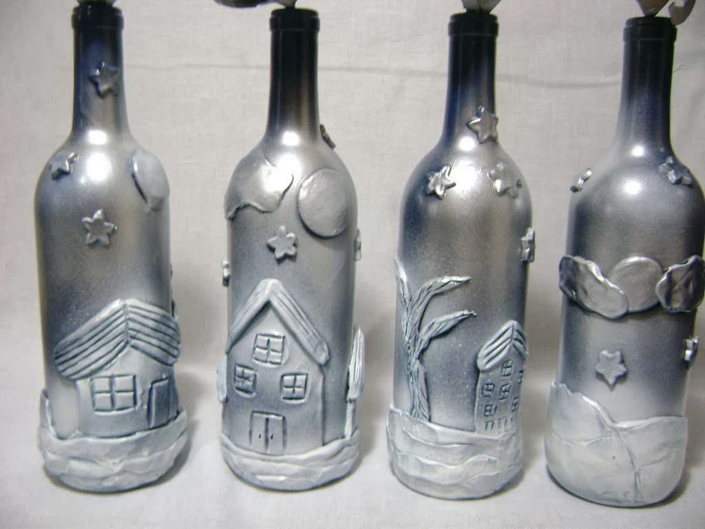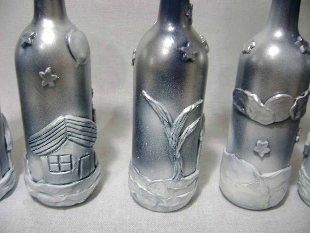 Essa técnica de biscuit na garrafa formando uma paisagem vi em uma revista do Ateliê na Tv (não lembro qual).