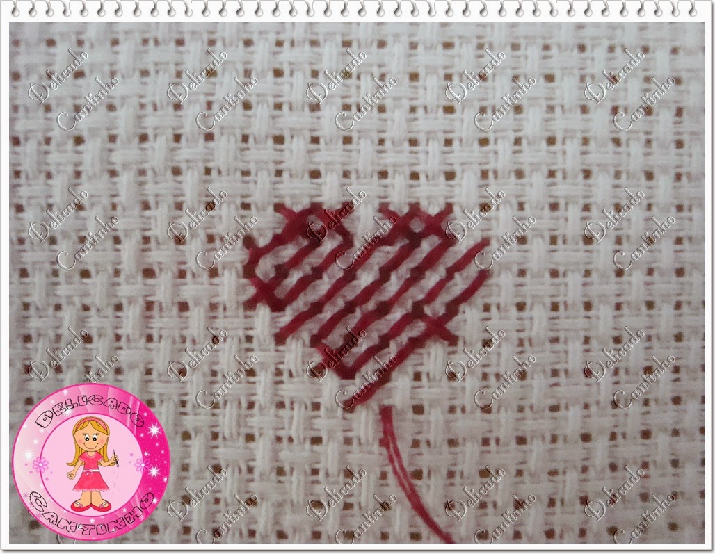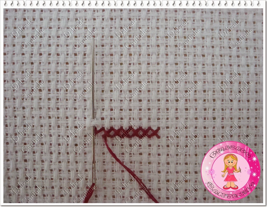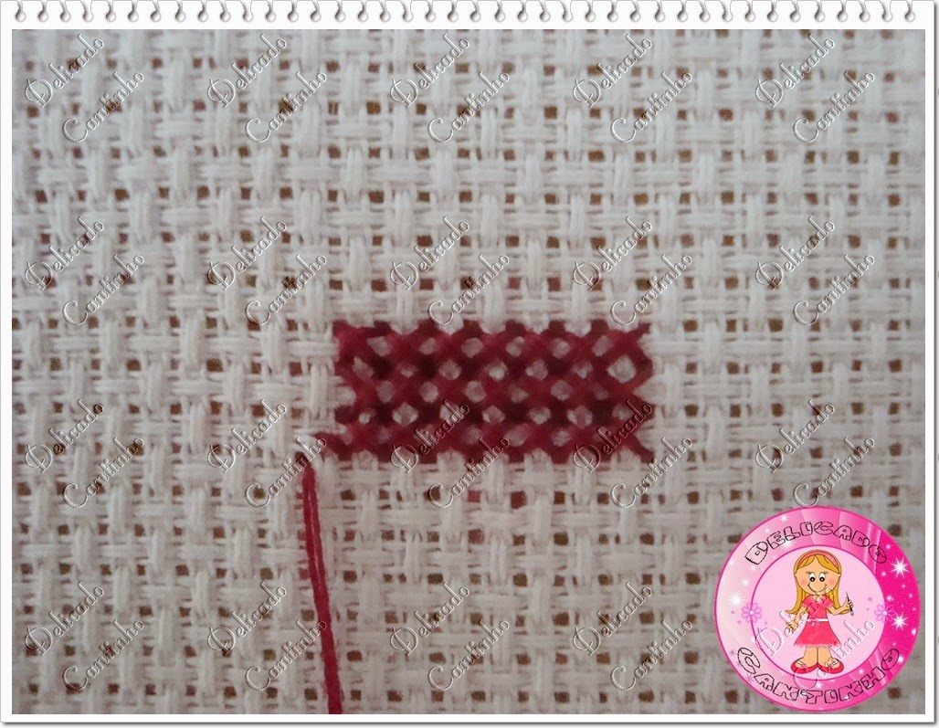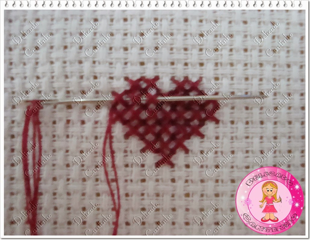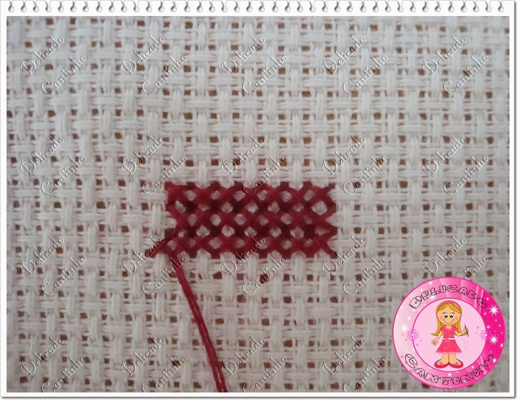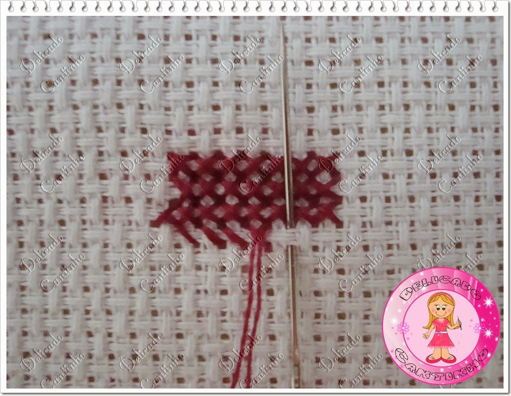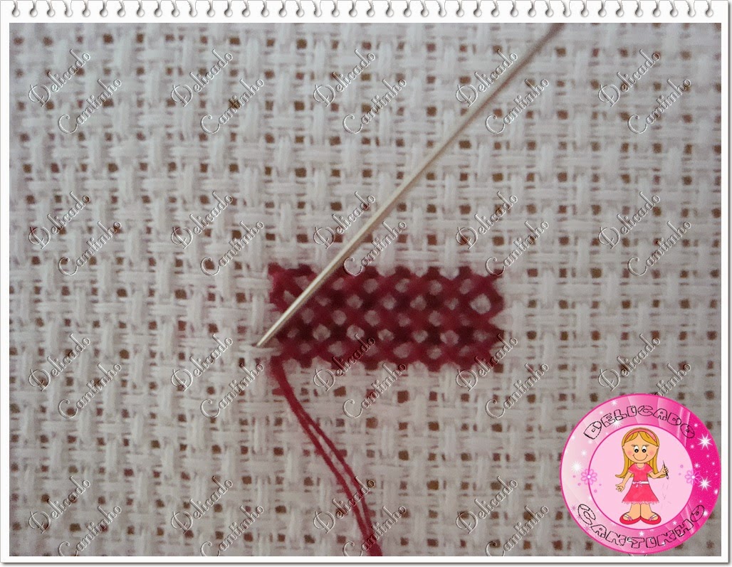 Vá com a agulha no centro do quadradinho.