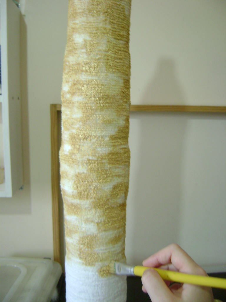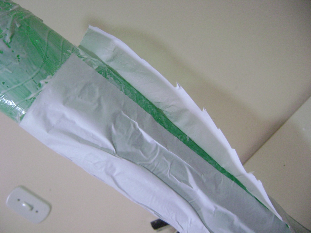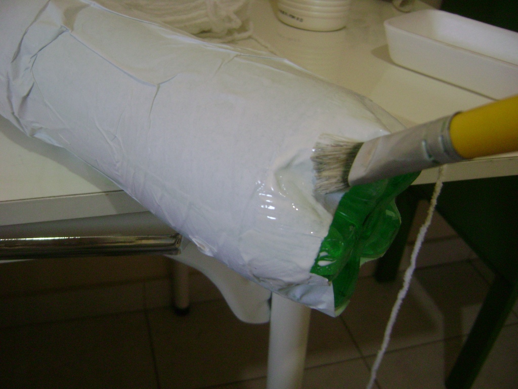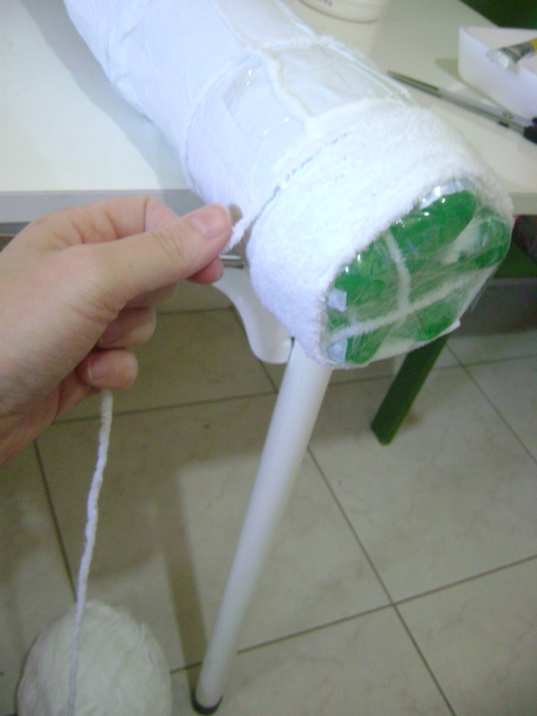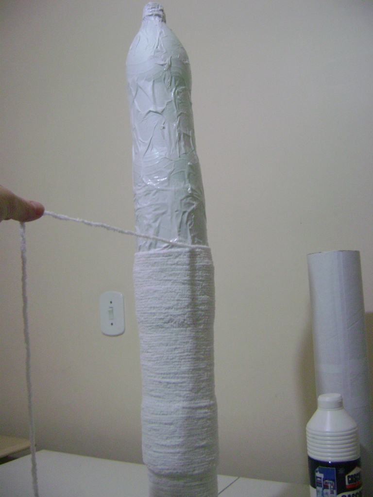 Depois de seco o papel, colei a linha de tricô branca (única que tinha em casa).