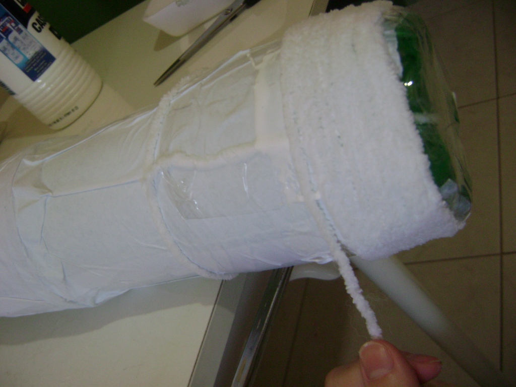 Tive que fazer umas adaptações, pois não podia usar vidro, a chance de cair e quebrar é muito grande. Usei só garrafa pet.