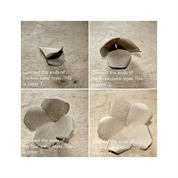 Agora, você deve iniciar a montagem da sua rosa, como na imagem acima.